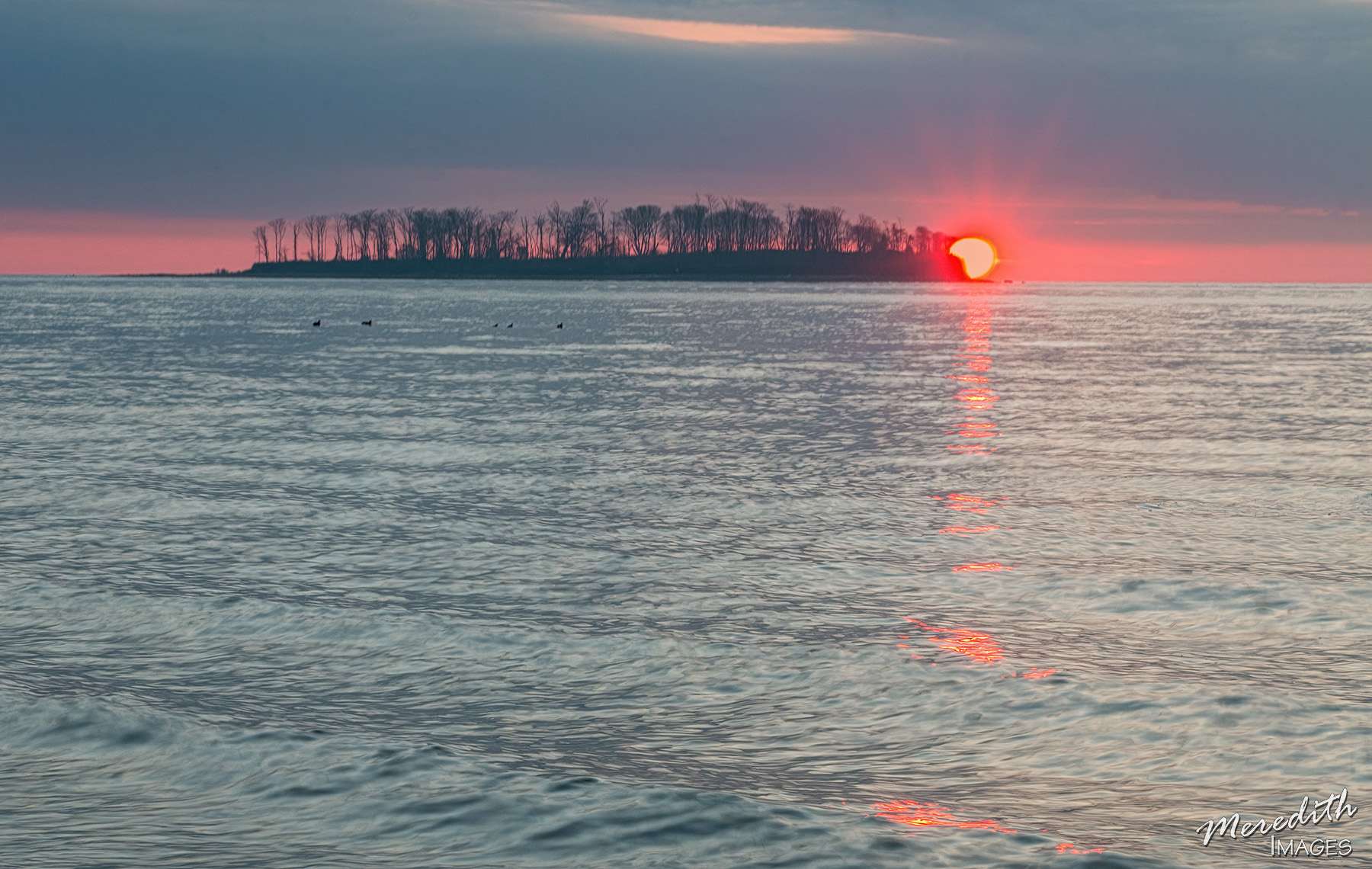 The sun rose in a fiery ball to the right of Charles Island, just off the coast of Walnut Beach. There is a sandbar that allows you to walk to the Island, however, you need to be very aware of the tide cycles as it is not unusual for people to get stranded on the Island once the tide rolls in.
