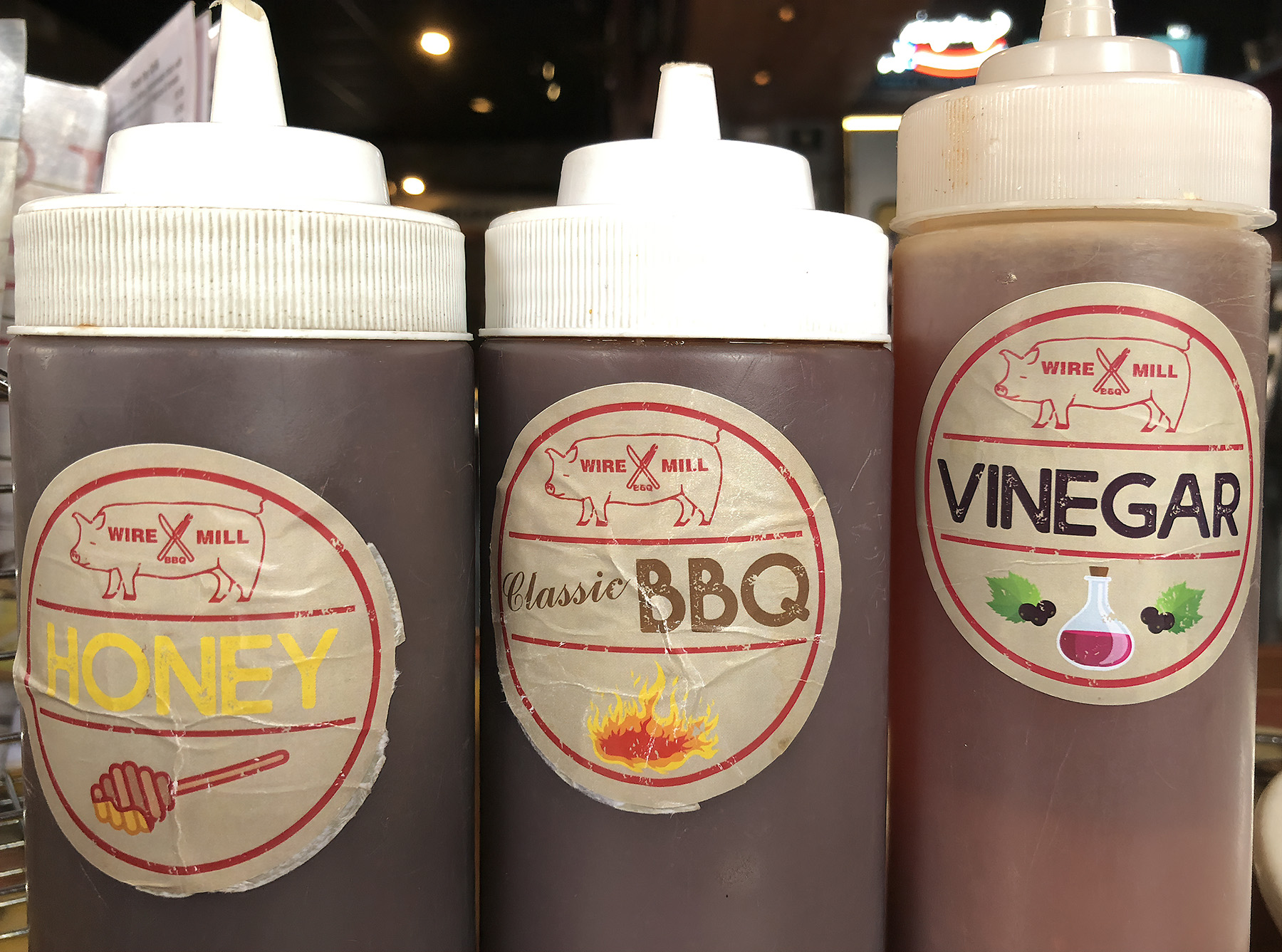 The Wire Mill serves Memphis-style dry rub BBQ, with an assortment of house-made BBQ sauces on the table including Classic BBQ, Honey and Vinegar. All of their sauces were a little tangy with a vinegar base.