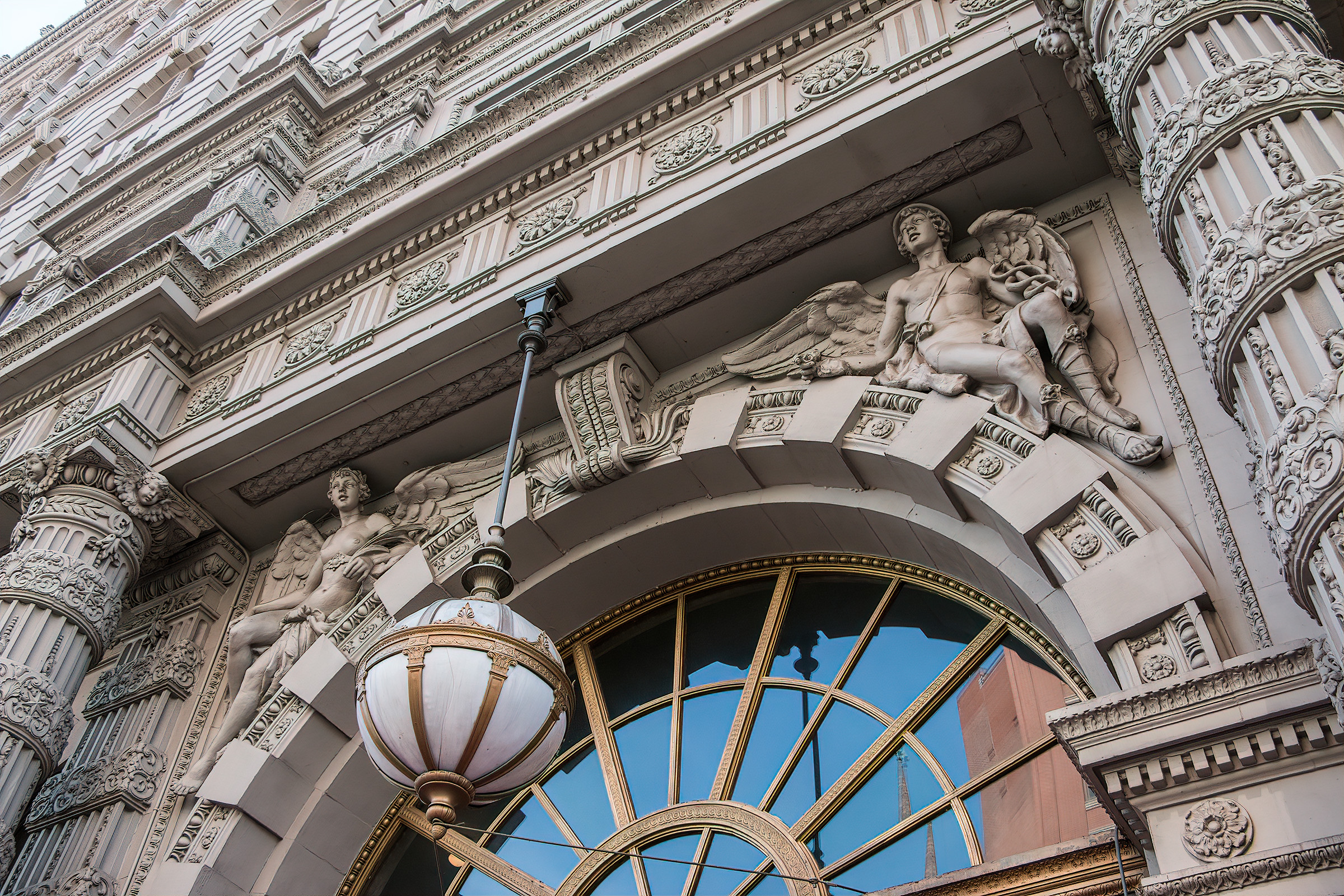 We selected the “Masters of American Architecture Tour” which showcased some of those beautiful turn-of-the-century buildings. We began in the lobby of the Hotel at the Lafayette on Washington Street. The docents led us on a two-hour tour with stops at the Guaranty Building (designed by Louis Sullivan & Dankmar Adler), the Ellicott Square Building (by Daniel Burnham & Co.), St. Paul’s Cathedral (by Richard Upjohn), St. Joseph’s Cathedral and the Old Post Office (now part of the campus of Erie Community College).